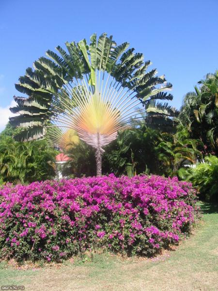 L'arbre du voyageur est originaire de Madagascar, il est membre de la famille des bananiers et symbolise le dépaysement tropical.
