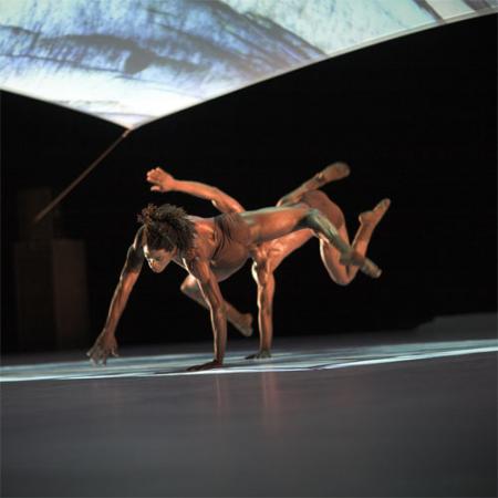 C'est sous un écran triangulaire que l'histoire commence. Deux silhouettes presque identiques, comme des jumelles, se lancent dans une danse aérienne, plutôt graphique mais très humaine. Elle paraît autant agile que précise. Avec leur corps, ils constituent la continuité des lignes et des points projetés par moment sur l'écran.