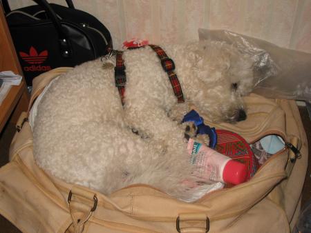 Twist, pas du tout gêné, qui vient " squatter " mon sac à 3 heures du matin !