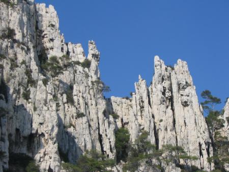 Les arbres se sont adaptés au climat provençal et poussent dans le calcaire de la roche